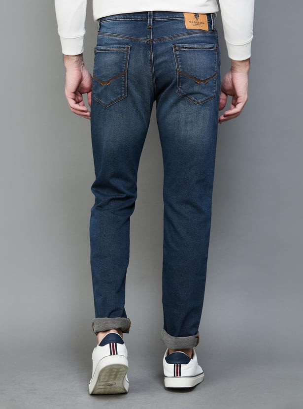 A versatile yet sleek staple, this pair of stylish skinny-fit jeans is crafted with a 5-pocket construction that ensures maximum utility and comfort. It is highlighted by a washed effect for an enhanced look, a button and zipper fly for a secure fit, and also includes waist loops for a belt.