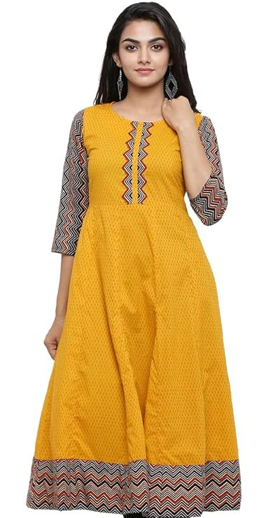 Women's Cotton Relaxed Fit Anarkali Geometric Printed Kurta