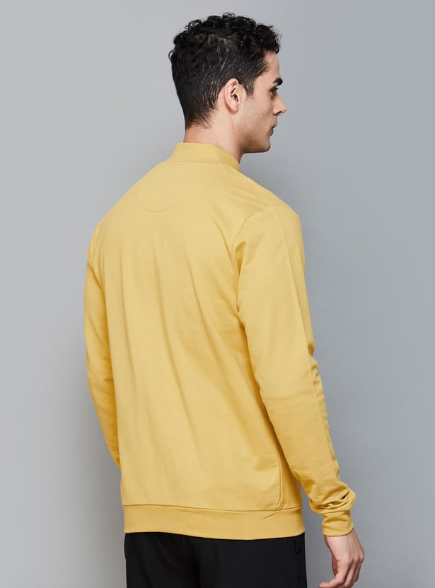Cosy up this season in this solid sweatshirt featuring a mock collared neckline, full sleeves, two insert pockets, a front zip closure, and a ribbed hemline. The solid colour palette of this sweatshirt allows you various styling possibilities, while its soft texture keeps you warm throughout the day.