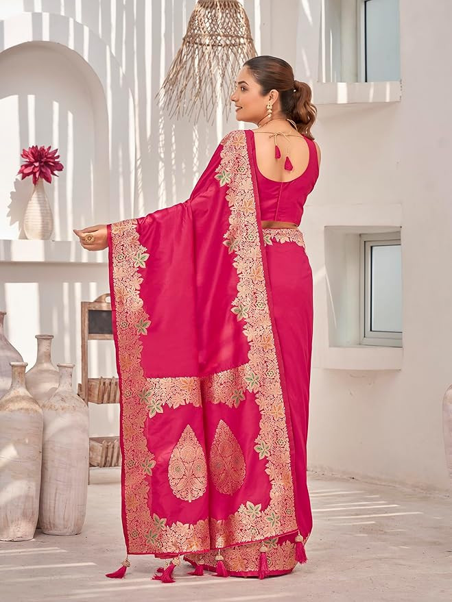 Saree comes with unstitched blouse piece,which is attached with end of the saree only. Buyer have to cut blouse part from the saree. Stiching service will not be available. There might be color variation due to screen resolution and digital photography