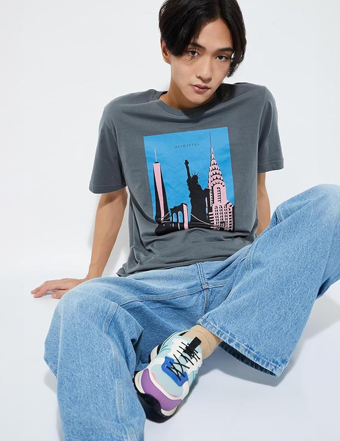 Men Slim Fit Graphic T-shirt Color: Dark Grey Pattern: Graphic Print Fabric :100% Cotton Wash Care :Machine Wash