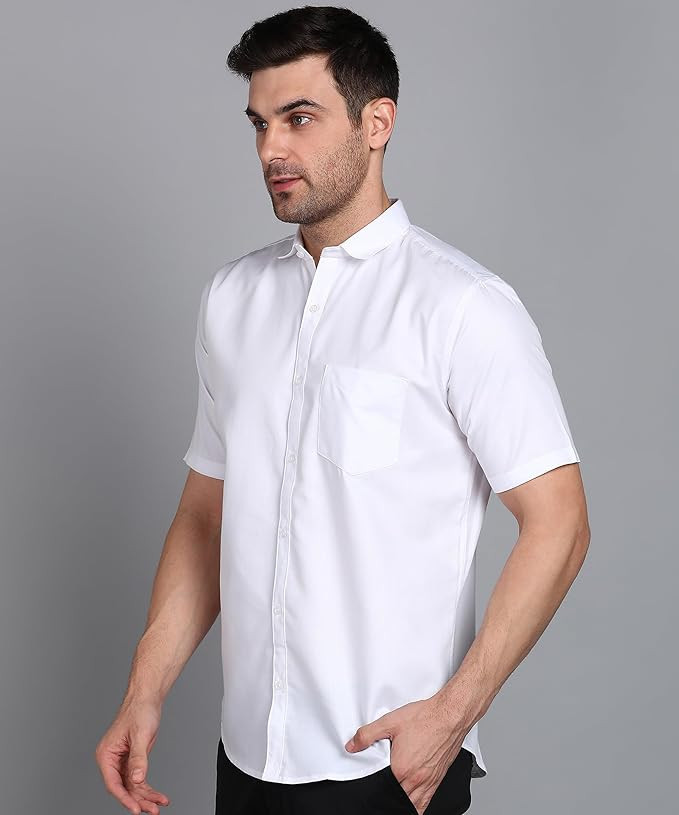 bout this item Premium Cotton Blend Fabric: Soft, breathable, and comfortable for all-day wear. Slim Fit Design: Offers a modern, sleek silhouette that flatters the body. Button Down Spread Collar: Timeless style that’s perfect for formal and business occasions. | Half Sleeve & Curved Hemline: Ideal for warm weather, providing a polished yet relaxed look. Chest Pocket: Functional single pocket for holding small essentials.