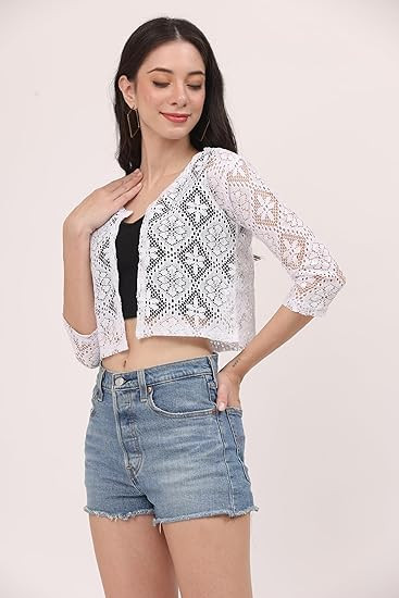 Women's Self Design Floral lace Regular Open Front Shrug
