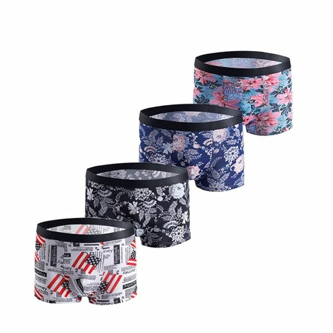 Printed Cotton Extra-Thin Ice Silk Elasticity Best Fitting Boxer Brief Shorts Pants/Underwear for Men (Pack of 4)