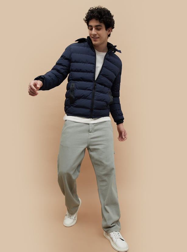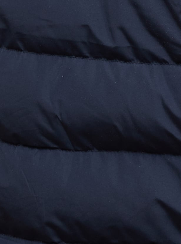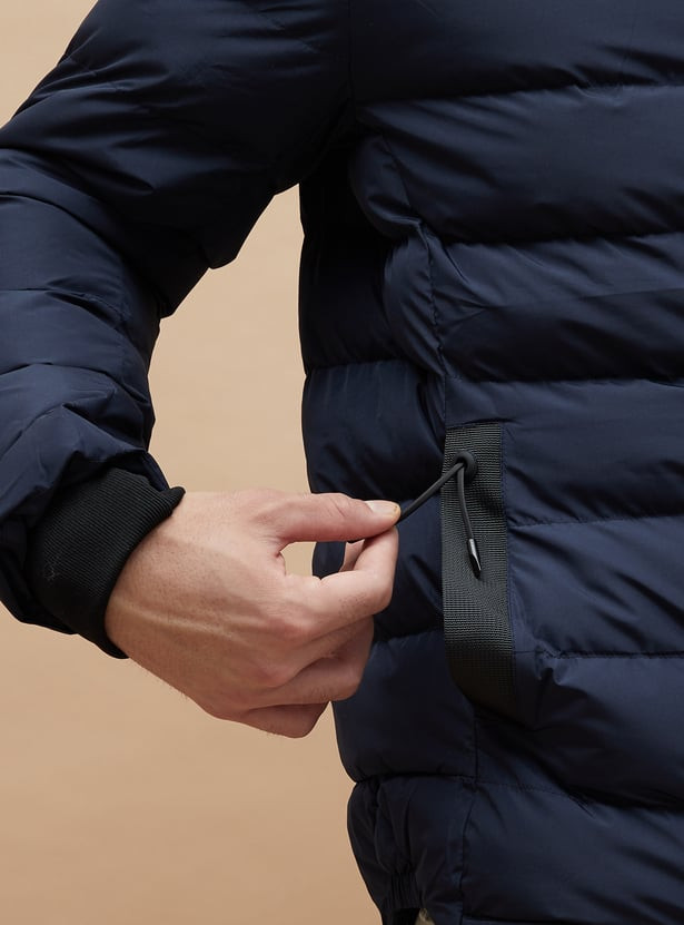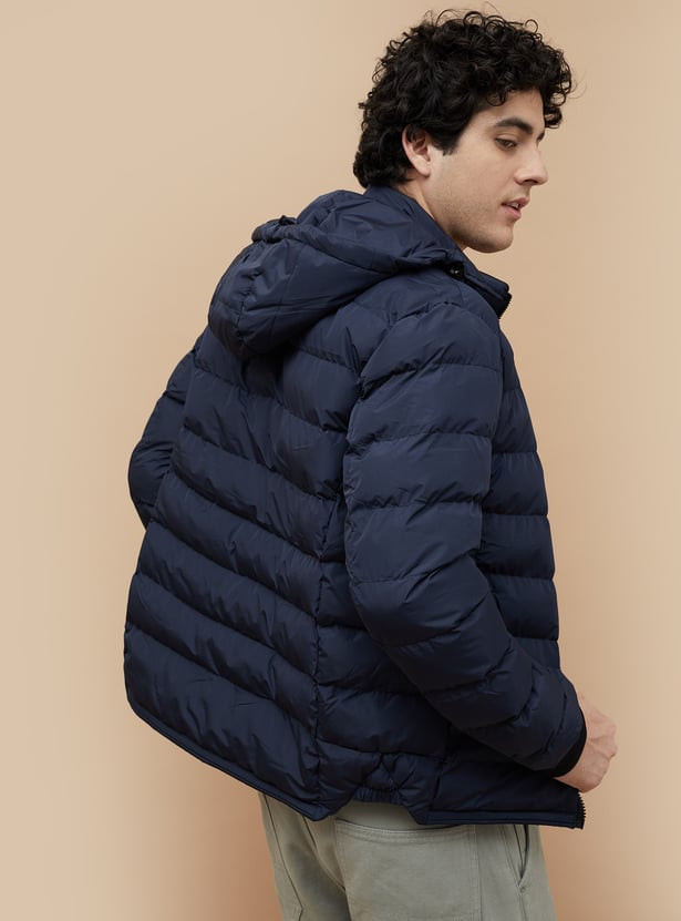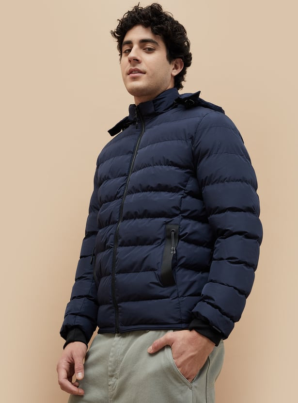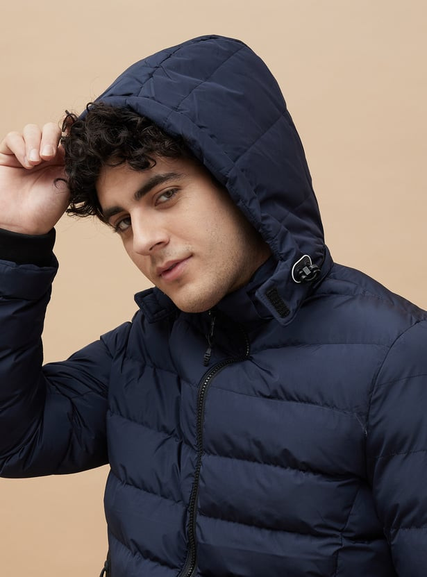 Stay warm and stylish with this sleek puffer jacket. Designed for optimal insulation, it features a quilted exterior, a stand collar for extra protection, and a detachable hood for versatile wear. The jacket includes handy side pockets to keep your essentials safe, while the elasticated cuffs help lock in warmth.