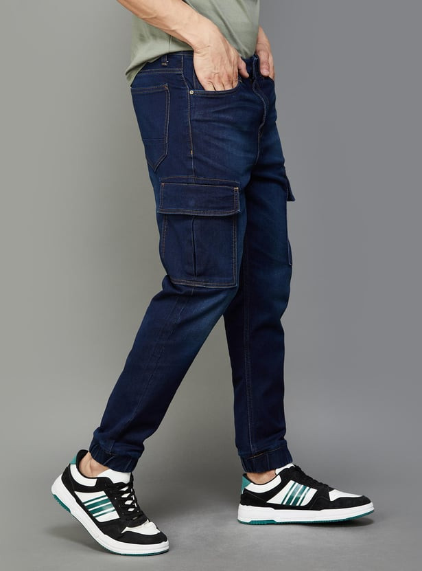 WIZARD Men Stonewashed Regular Fit Cargo Jeans