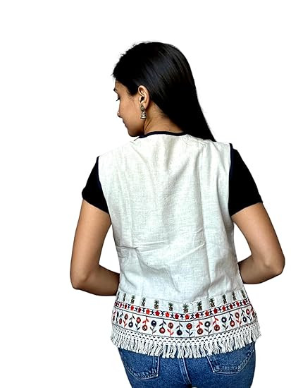 Jacket/Koti/Shrug can be paired with any plain/printed top for best results. You may also try these with your tees to give a fusion look. Made with finest kutch work embroidery designs, this will surely make you feel wow. Full embroidery work for the Ethnic & Classy look; Warning : Do Not Bleach Color Name: White; Age Range Description: Adult; Closure Type: Drawstring; Color Map: White