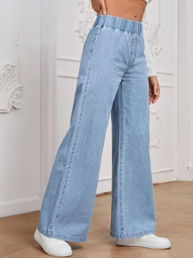 with casual and dressy tops, suitable for both everyday wear and special occasions FLATTERING FIT: Wide-leg silhouette creates a lengthening effect while the high-waist design accentuates the natural waistline MATERIAL: Premium denim fabric provides durability and stretch while maintaining shape throughout the day